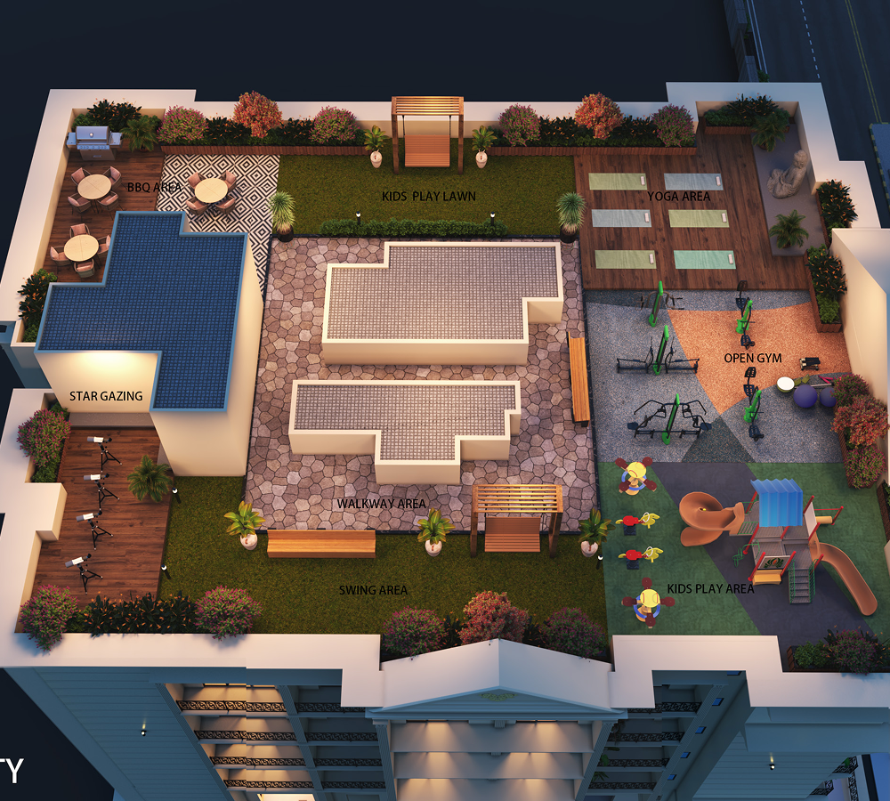 Disclaimer: The Plans, Drawings, Specifications, Amenities and other details herein are indicative and tentative and are subject to the approval of competent authorities. All rendering, maps are artists conception and not actual depiction of building and landscaping and the Developer reserves the right to make any alteration, addition or amendments as may be required or necessitated from time to time without prior notice and obligation. This Printed material does not constitute an offer and/or contract of any type between the Developer and the recipient. Any purchase/lessee of this development shall be governed by the terms and conditions of the Agreement for Sale/lease entered between parties and nodetails in this printed material shall in any way govern such transaction.
